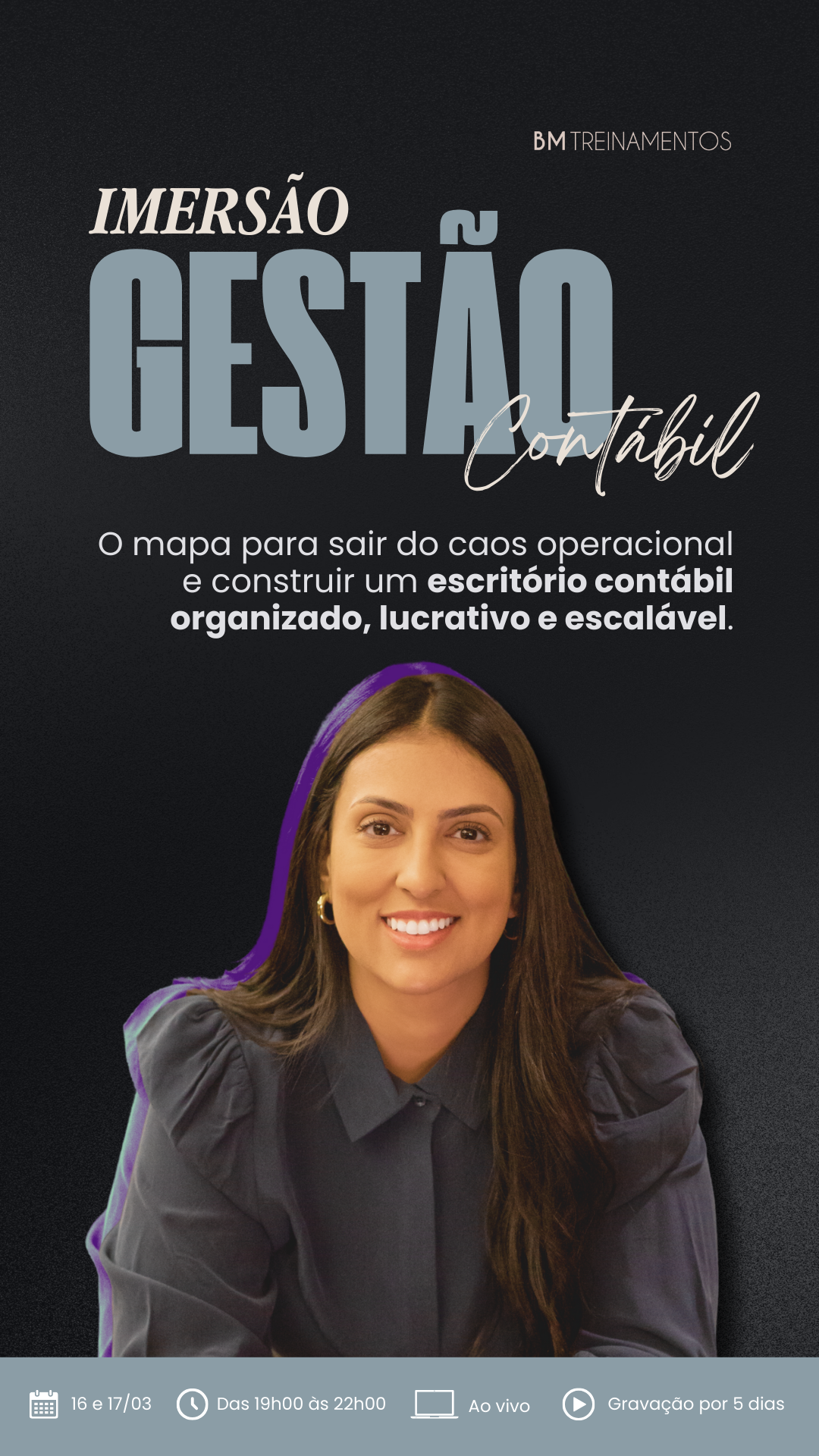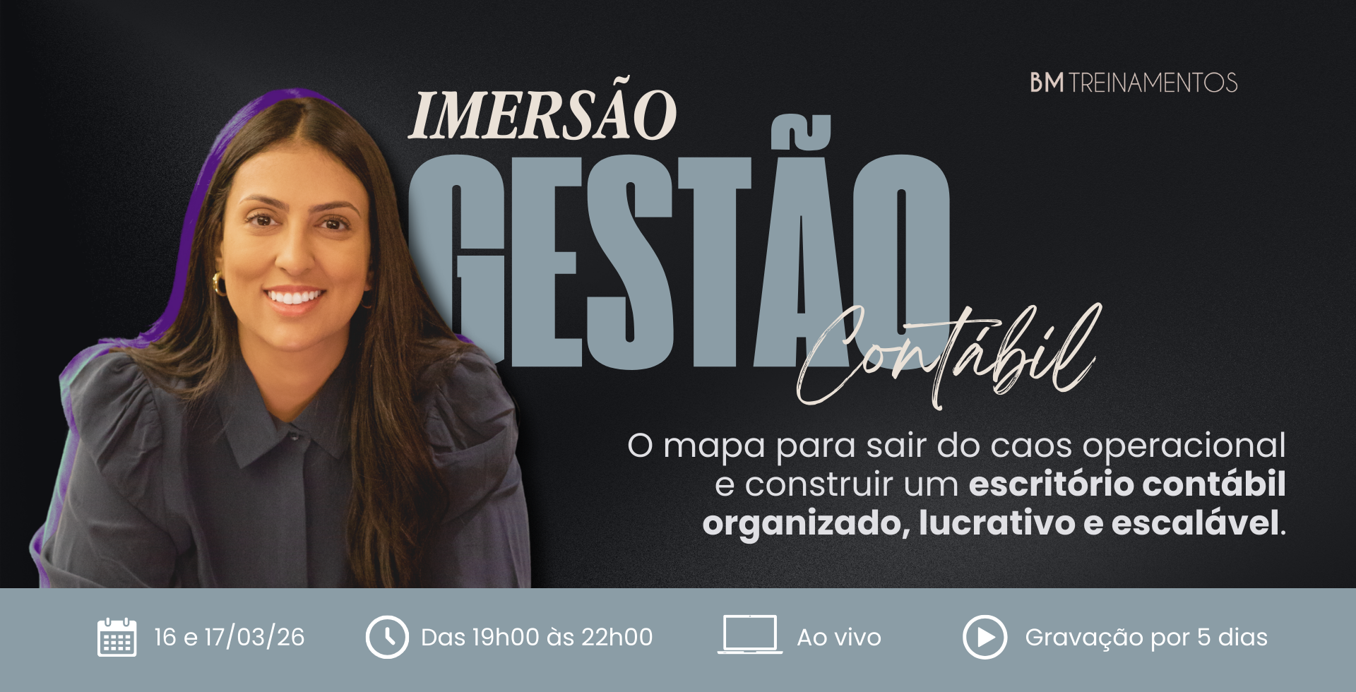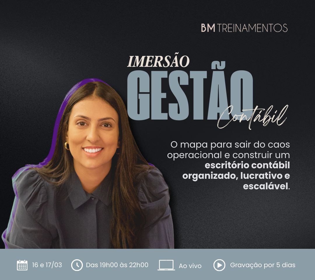 Contador(a), nesta Imersão eu vou te mostrar como organizei a gestão do meu próprio escritório para sair do operacional e assumir, de vez, o papel de dona do negócio.