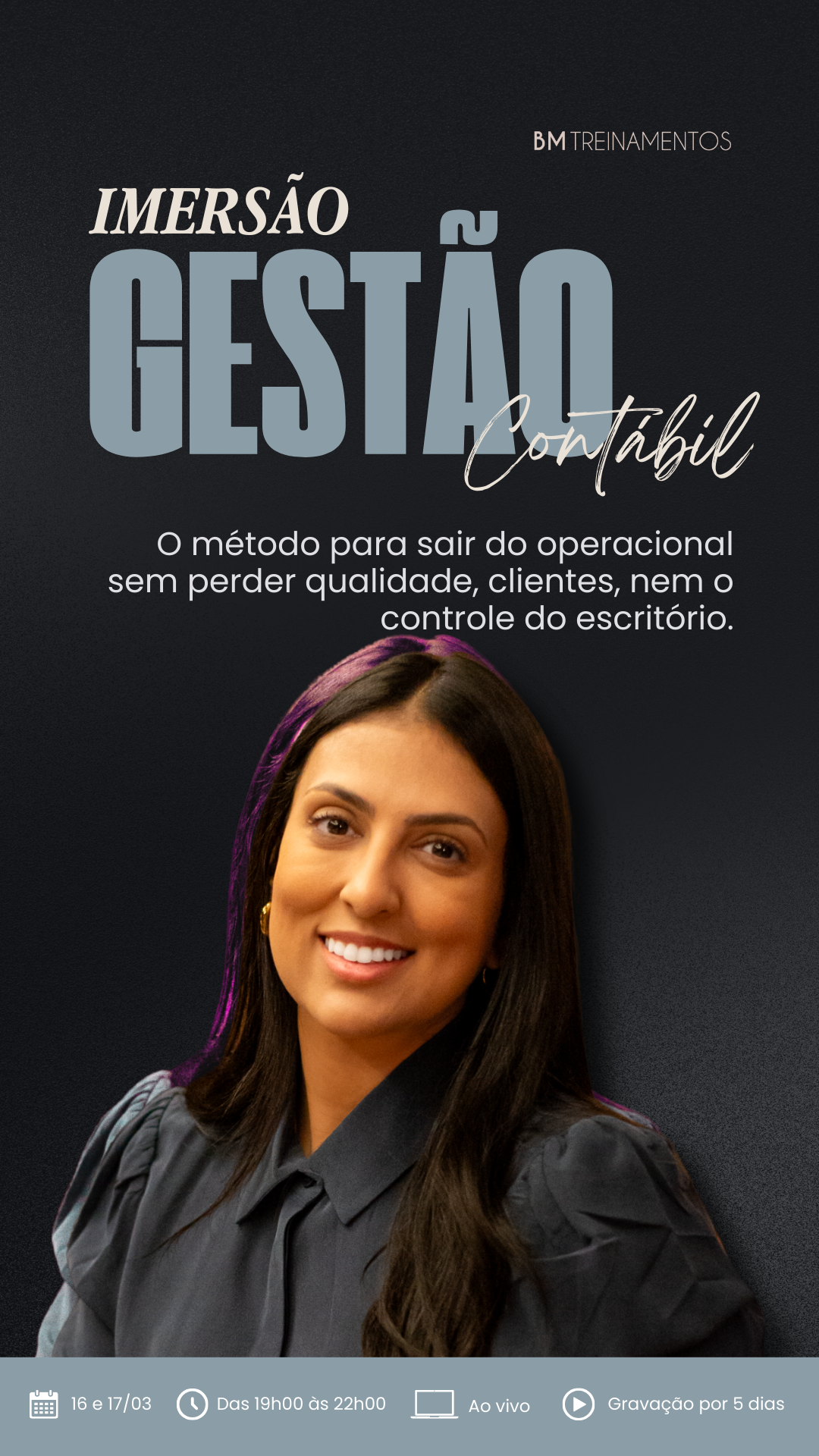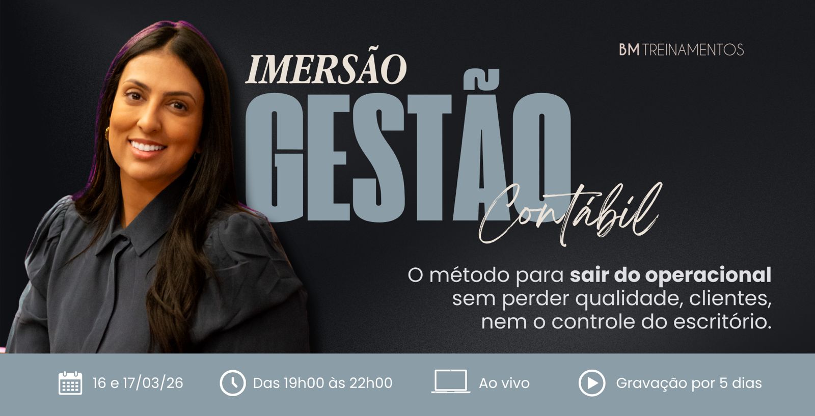 Contador(a), nesta Imersão eu vou te mostrar como organizei a gestão do meu próprio escritório para sair do operacional e assumir, de vez, o papel de dona do negócio.